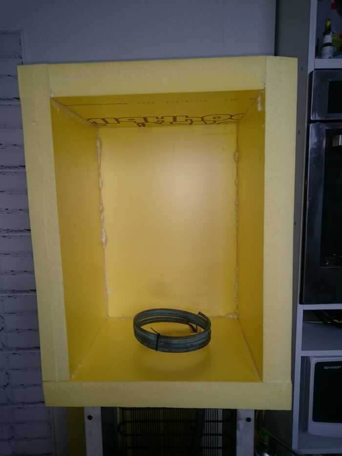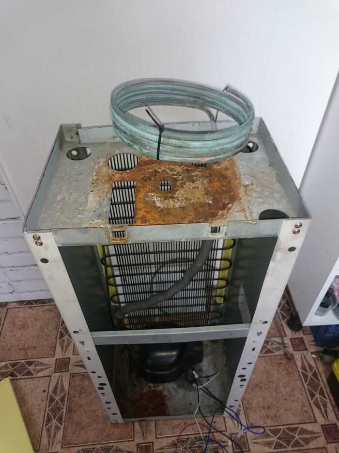 Самая главная проблема - образуется конденсат на спиральке. Нужна помощь мастера по холодильному оборудованию. Надо приварить вместо спирали заднюю стенку от холодильника и заправить это устройство.