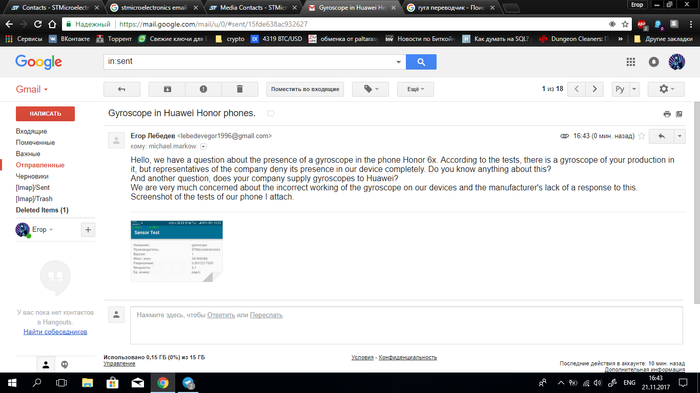 Также я написал производителю гироскопов с целью выяснения ситуации, жду их ответа.
