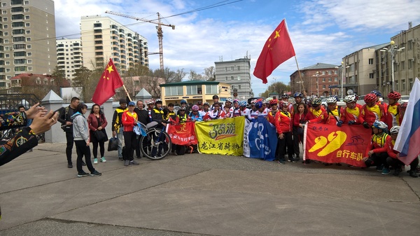 На границе у речного порта в России встретили группу китайских велосипедистов - которые приехали на 3 дня в Россию.