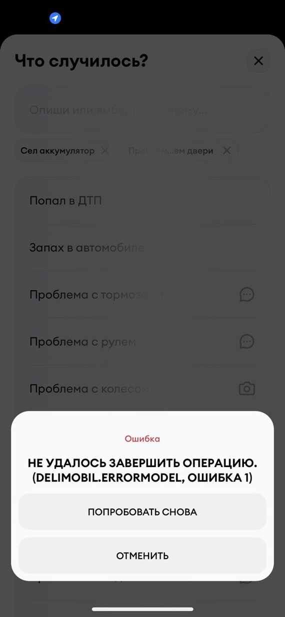 Но ведь в приложении можно завершить аренду сообщив об этом в техподдержку думаешь ты. Но и тут тебя постигает разочарование! Приложение отказывается сообщать о проблеме дальше.