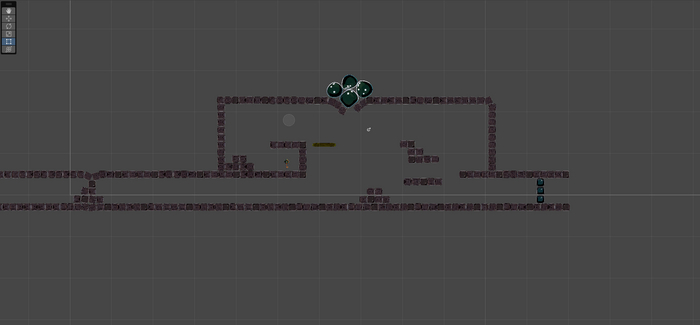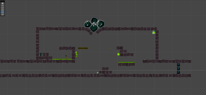 На данный момент у нас есть персонаж и необходимые спрайты для создания уровня. Переходим в Unity, создаем новый проект для нашего будущего шедевра, перекидываем необходимые файлы в репозиторий и приступаем к созданию наброска уровня. После всех манипуляций получаем данную картину: