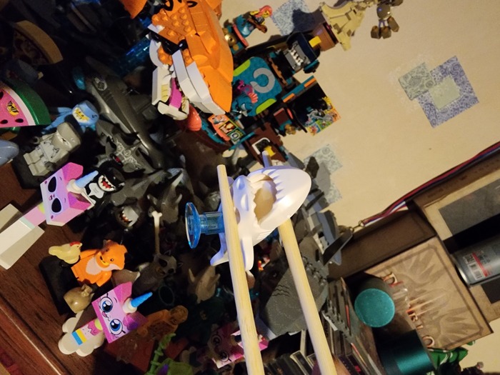 Это обычная серая акула с новым молдом тела и головы, ведь набор вышел в 2019 году по мотивам Lego Movie 2. В нём 461 деталь, но меня больше интересовали только 2 - тело и голова акулы. Она, кстати, заряжалась в некое подобие пусковой установки.