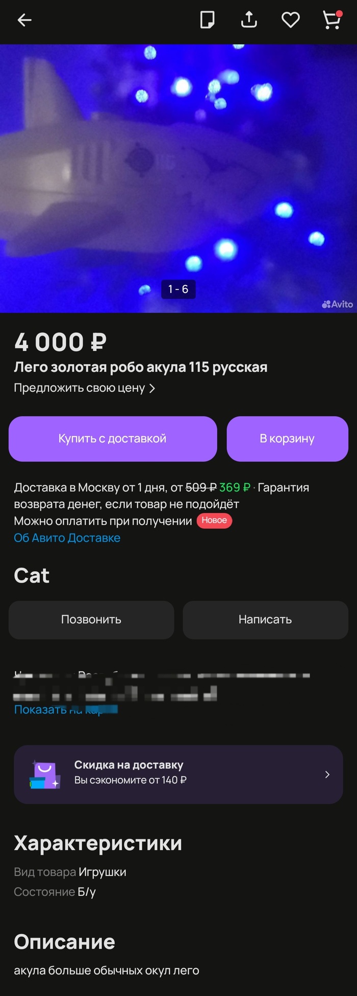На очень необычный лот наткнулся при исследовании Авито. Сработал триггер на подписку лего-акул
