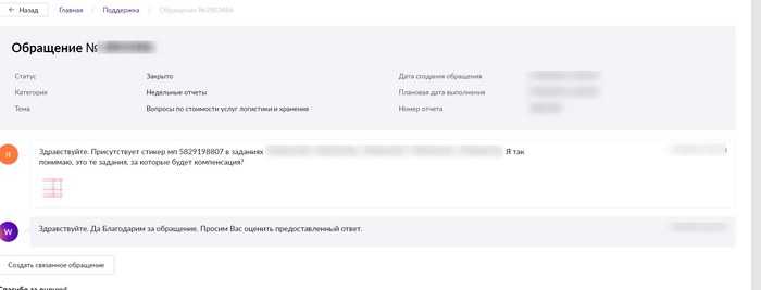 Проходит неделя. Получаем новые отчеты, где снова у многих продавцов появляются такие же начисления, у меня нет. И компенсации тоже нет. Пишу в поддержку, получаю ответ, что все начислено верно, и точно такие же шаблонные ответы получили все.