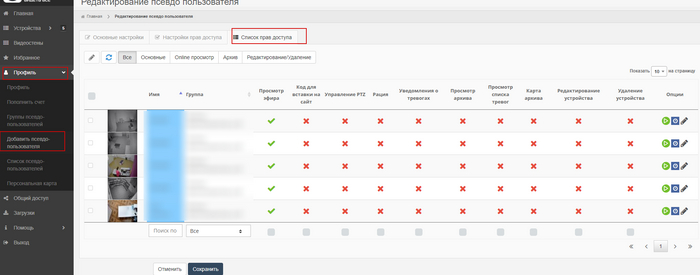 Далее на сайте ipeye в графе профиль добавляем псевдопользователя, указываем логин и пароль, который будет отправляться для WB, так же выставляем нужные права.