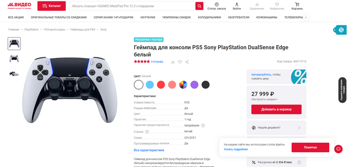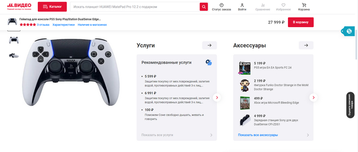 3 leoval Цены в Мвидео 1 год назад На пикабу вылезла вот такая реклама: Глаз зацепился за цену. Решил перейти по ссылке: Так же предлагают услуги: Серьёзно? 28к за геймпад? Или я чего-то не понимаю? Показать полностью 2 [моё] Картинка с текстом МВидео Playstation Геймеры 3 1 Ещё 0
