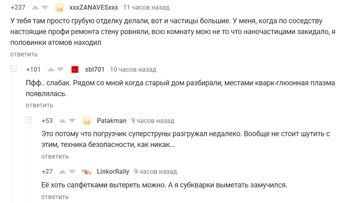 10 leroy335 За что я люблю Пикабу 6 лет назад Ссылка на пост: https://pikabu.ru/story/soderzhit_li_stroitelnaya_pyil_vredo... Показать полностью Комментарии Комментарии на Пикабу Наука Юмор Скриншот