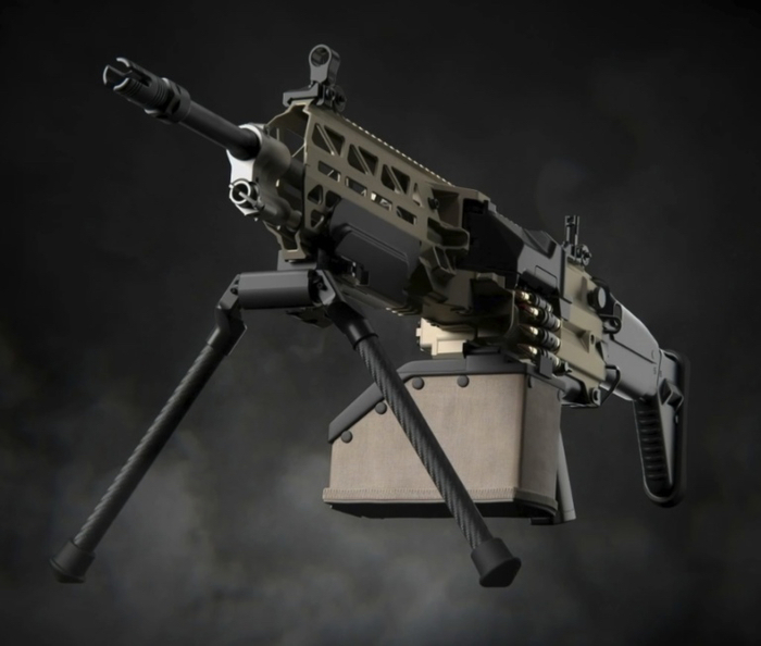 Мультикалиберный пулемет, в текущий момент существует под 5.56 и 7.62, есть разработки под 6.5 CM и 6.8x51.