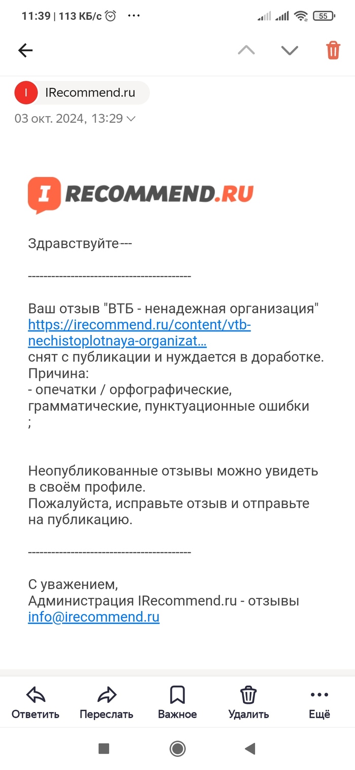 Но на днях, спустя 2 недели решил зайти посмотреть на оставшиеся копейки на счете (к слову, услугами банка ВТБ пользуюсь редко, т. к. это третий банк в моём списке пользуемых), ввожу пароль, на что пишет, что неверно. Нажимаю "забыл пароль", пишет, что зайдите позже. Позже не помогает. Решаюсь на установку приложения мол там пароль не нужен. После установки приходит сообщение, что доступ заблокирован