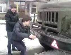 УАЗ выгнали, и начали заводить ЗиЛ. Но, он, падла, успел замёрзнуть и не заводится.