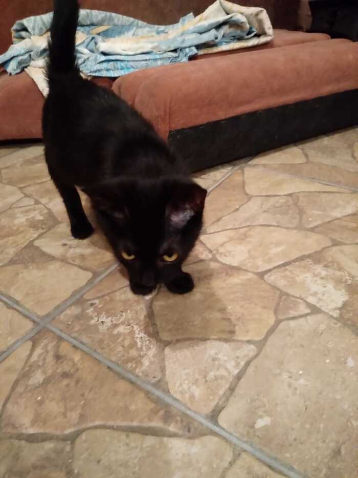 Исся воронья шубка с белым полумесяцем на шейке, жёлтые глазки и черные подушечки! Мурлыкает как трактор, лезет обниматься и не вспоминает, откуда и как пришла