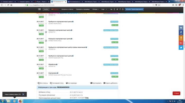 Сразу к сути. Решил немного сэкономить и заказал телефончик на Али. Есть опыт заказов с алиэкспресс , и это первый заказ с которым у меня проблемы . Посылка уже месяц лежит в г. Казань на сортировочном центре и дальше не двигается. Ходил в свое отделение почты и писал заявление на розыск - толку 0 . Осталось всего день пути , но посылка не двигается . Конечно я через некоторое время открою спор и верну деньги , но очень жаль потраченного времени на ожидание. Телефон заказывал, как подарок к НГ . Может кто из пикабушников работает на сортировочном центре в г. Казань и поможет подтолкнуть посылку? Или какие варианты еще можно предпринять ?