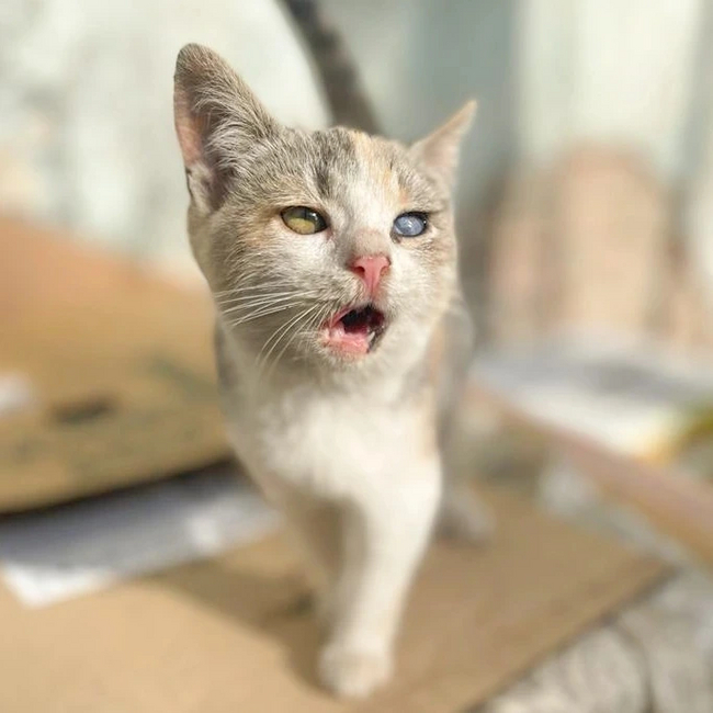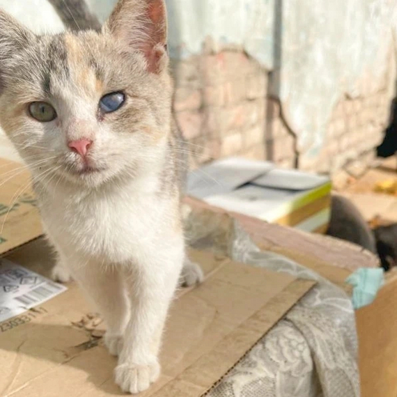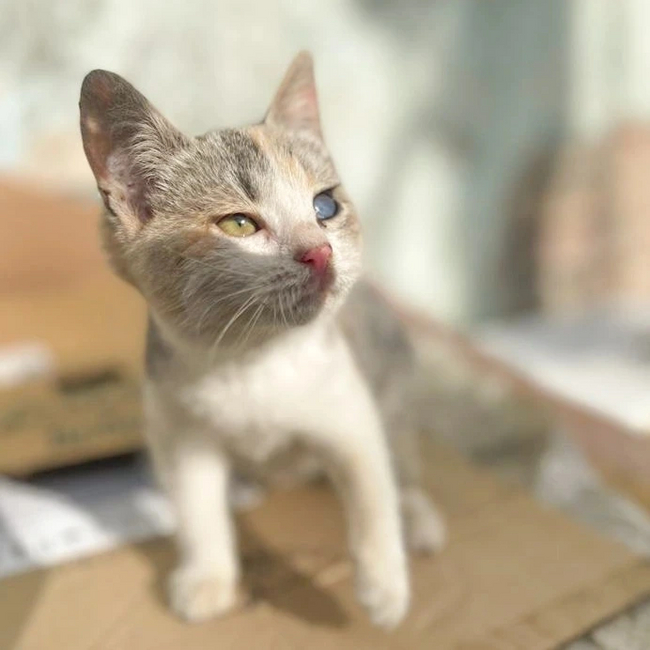 Шефу всего 2,5-3 месяца. Был спасен с улицы, сегодня в безопасности, проживает на передержке, где успел наладить дружбу с собакой.