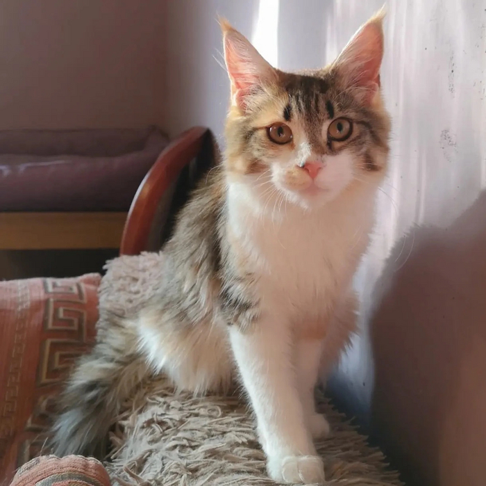 Моте около 8 месяцев. Здорова, привита, стерилизована. Лоточек знает на отлично