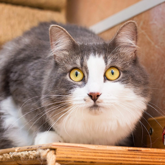 Он уже взрослый умный кот, примерный возраст 6-7 лет. Очень нежный и ласковый, постоянно тянется к общению с человеком, обожает, когда его гладят и чешут шерсть - готов душу продать за почесушки!