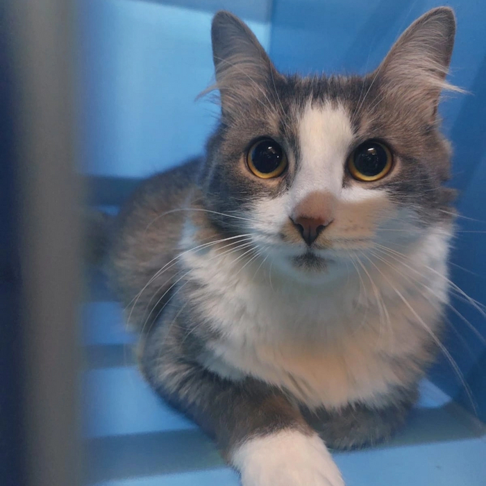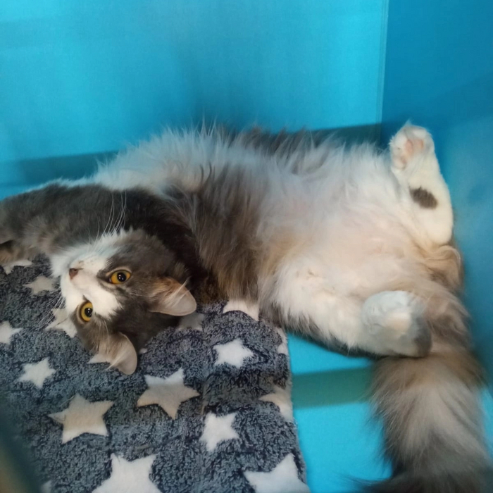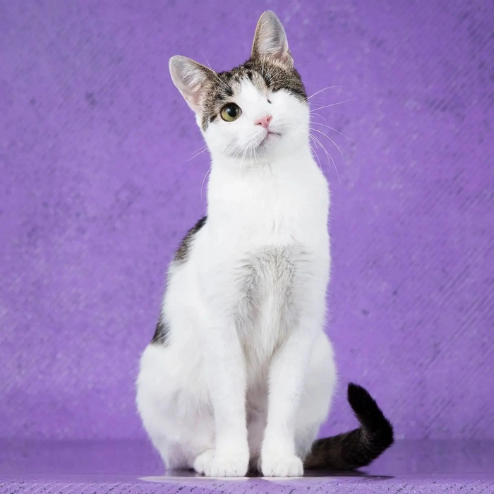Котенком Марту подкинули в вет. клинику. Вид у нее тогда был, мягко говоря, не для слабонервных: тощая, больная, больше похожая на тень, чем на кошку. И плюсом у Марты был “Бычий глаз», который пришлось удалить.
