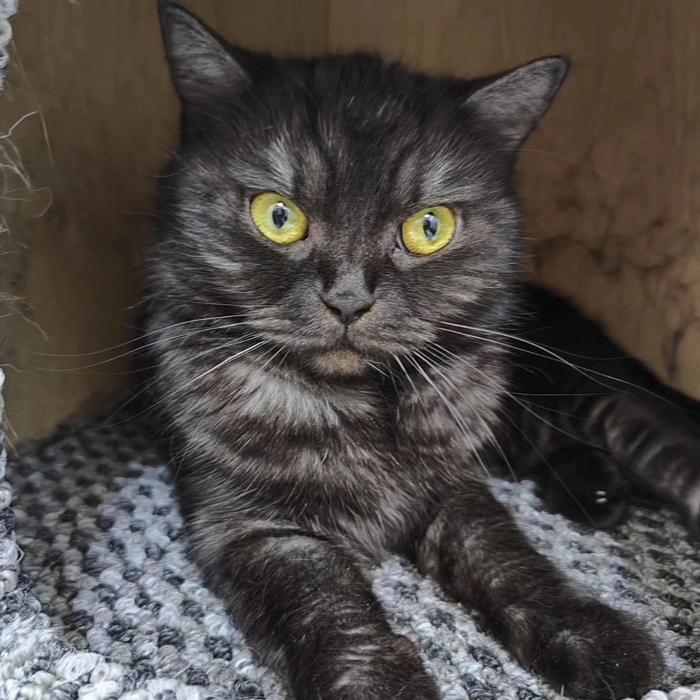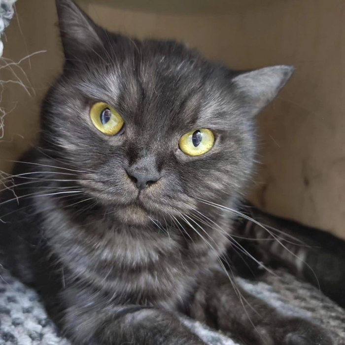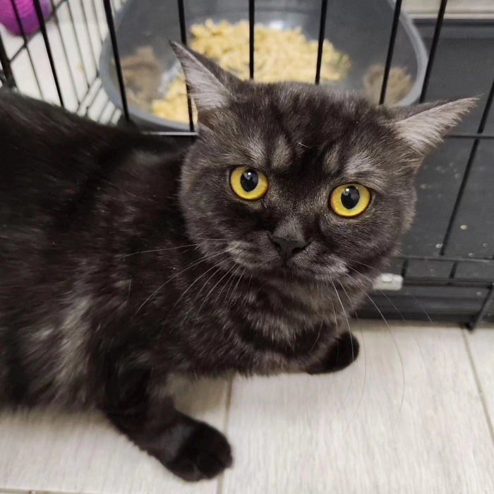 Джейн - британская кошечка черного шиншиллистого окраса. Помимо нежного ласкового характера имеет невероятно трогательную внешность: милые маленькие ушки, мягкую плюшевую шубку, миниатюрный носик. А в эти желтые круглые глаза можно смотреть бесконечно..