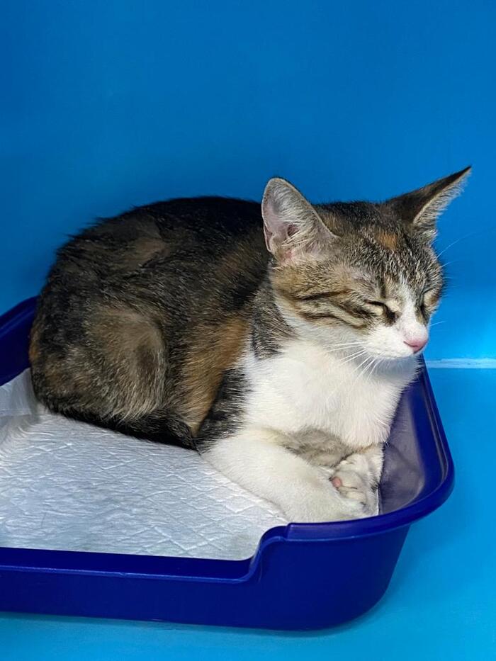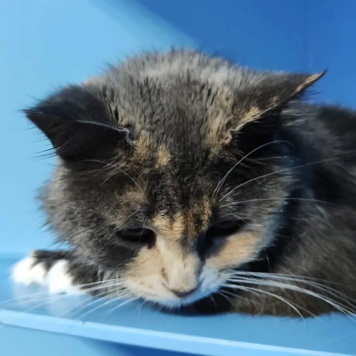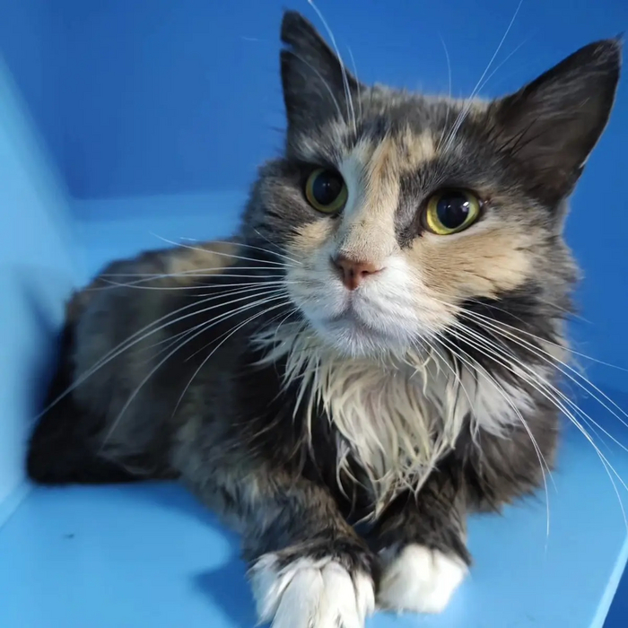 Когда Джейн вывозили из квартиры с 30 кошками, она была в ужасном стрессе: жалась к стенкам боксика, шарахалась от вида рук, дрожала, когда к ней подходили близко