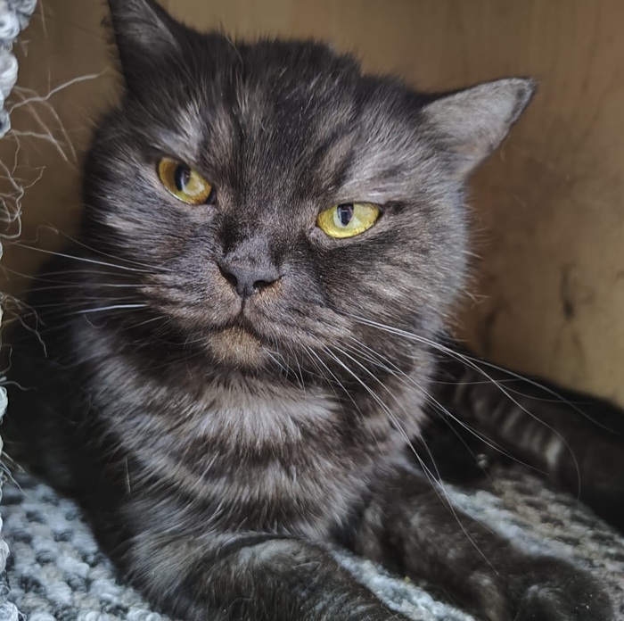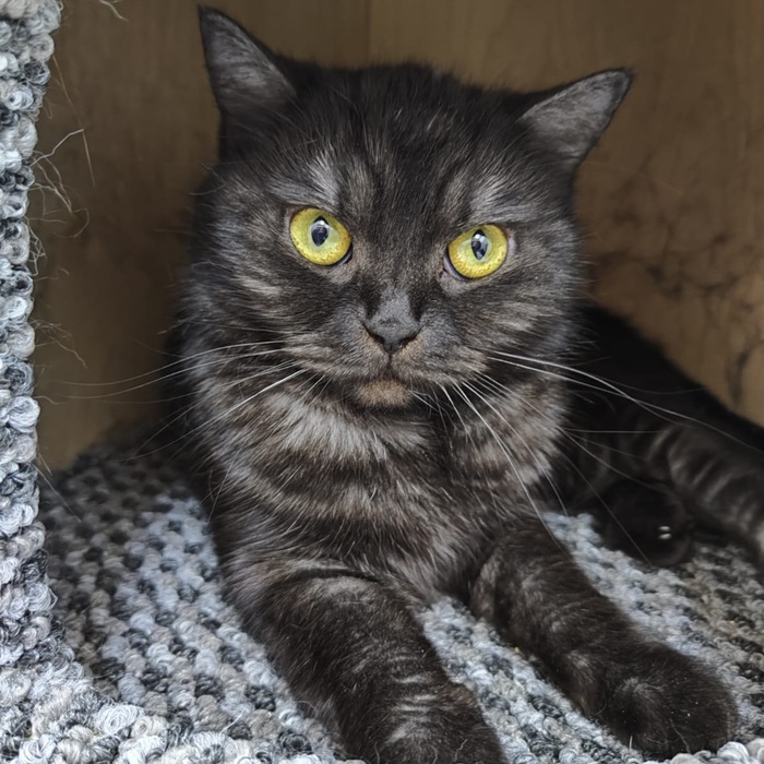 Джейн - британская кошечка черного шиншиллистого окраса. Помимо нежного ласкового характера имеет невероятно трогательную внешность: милые маленькие ушки, мягкую плюшевую шубку, миниатюрный носик. А в эти желтые круглые глаза можно смотреть бесконечно..