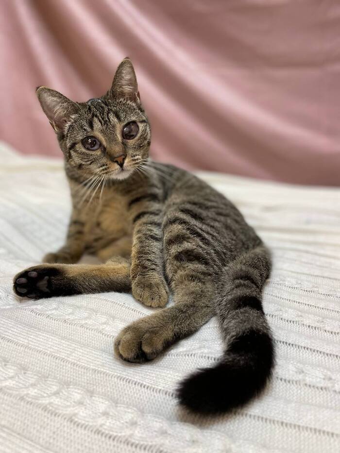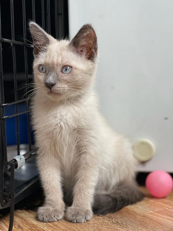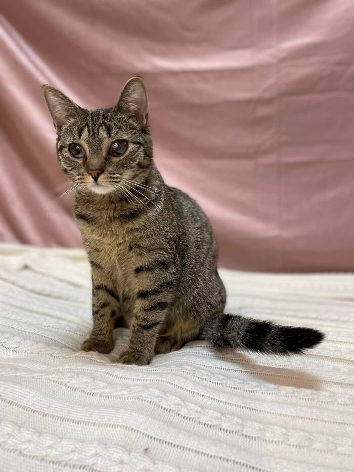 Еще совсем ребенок, ей нет и года. Плюшевая, миниатюрная, в боксе мурчит и ластится, просится на ручки. Сложно представить, как такая кроха выживала на улице