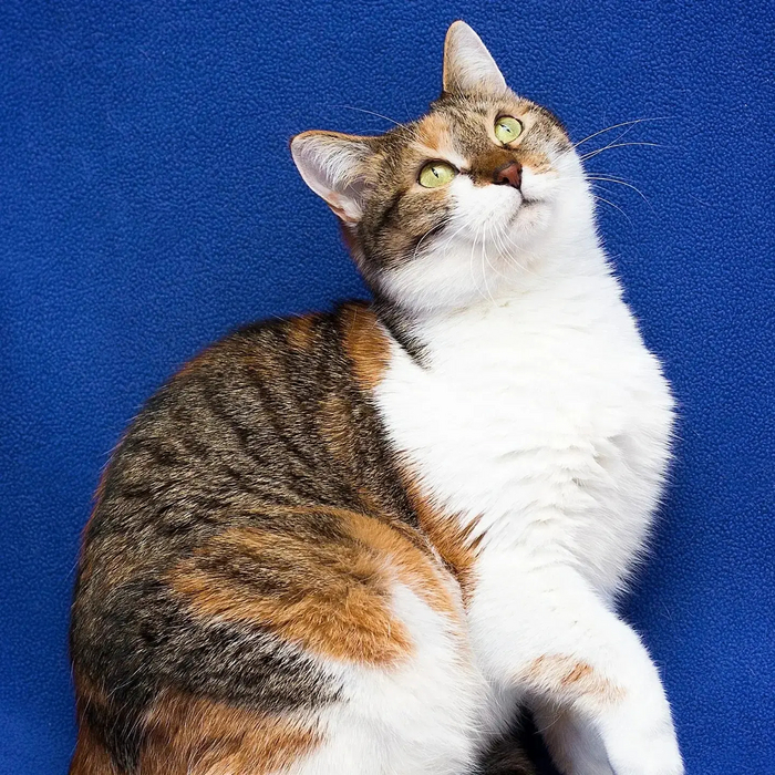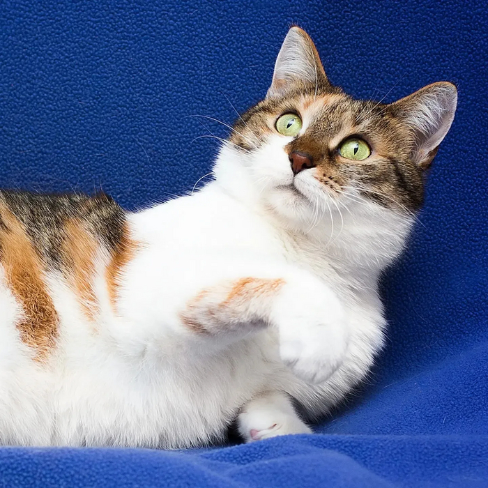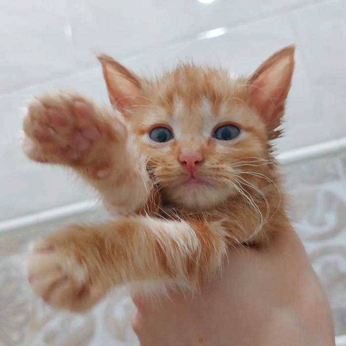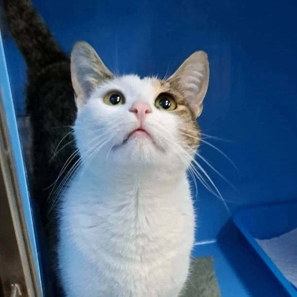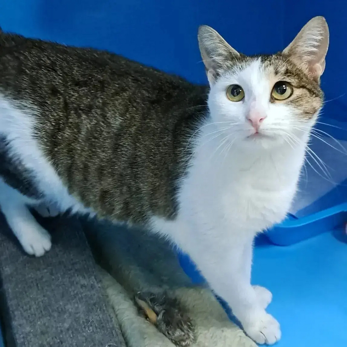 Мими "не повезло" быть белой в пятнышко, таких люди забирают очень редко и с неохотой. Почему? - вопрос без ответа, видимо, такой окрас плохо вписывается в интерьер или слишком пестрит в глазах.. Но факт остаётся фактом: беленькие кошечки в шапочках дольше всех остальных ищут дом, какими бы ласковыми, красивыми они ни были