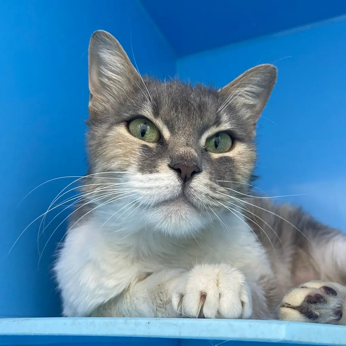 - Мамочка-героиня по имени Тыгыдык. Как только младшая партия станет кушать самостоятельно, эта невероятная трехцветная красота отправится на стерилизацию, после чего ее можно будет забрать в любящую и ответственную семью. Так что, кто мечтал о трехцветном счастье, присмотритесь!