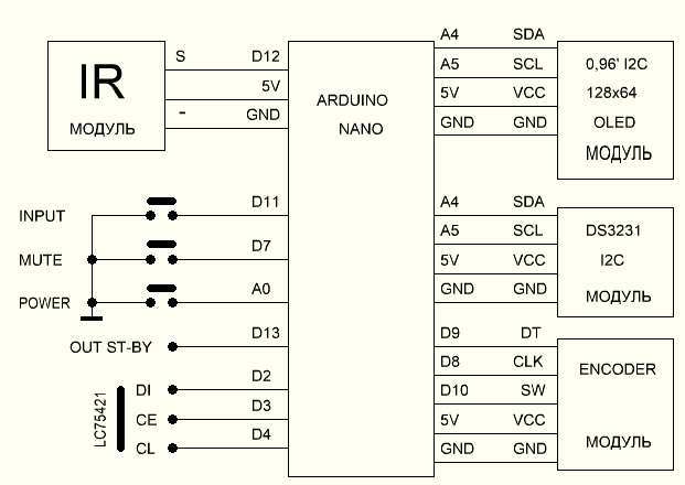 Ранее в статье рассматривался пример создания на основе аудиопроцессора BD37033FV регулятора громкости и тембра с использованием дисплея LCD1602 + I2C, в этой статье аналогичный пример, но с использованием дисплея 0.96′ I2C 128X64 OLED.