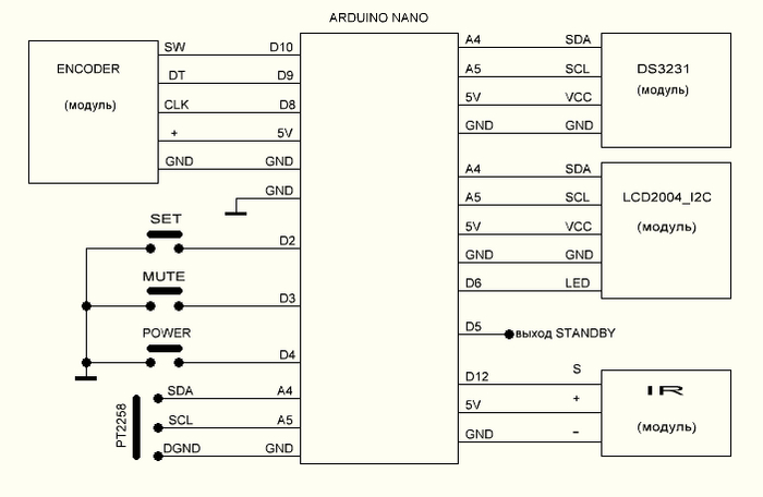 На базе Arduino и аудиопроцессоре BD37033FV можно собрать довольно качественный регулятор тембра и громкости. В качестве органов управления регулятором тембра и громкости применены кнопки, энкодер и ИК пульт.