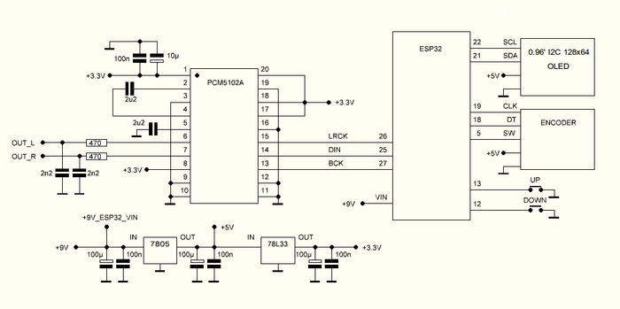 Ранее в статье http://rcl-radio.ru/?p=111051 рассматривался пример создания интернет-радио на основе ESP32 (ESP32 DevKit v1 Wi-Fi Bluetooth ESP32-WROOM-32) и звукового ЦАП PMC5102A с использованием дисплея LCD1602 + I2C, в этой статье аналогичный пример, но с использованием дисплея 0.96′ I2C 128X64 OLED.