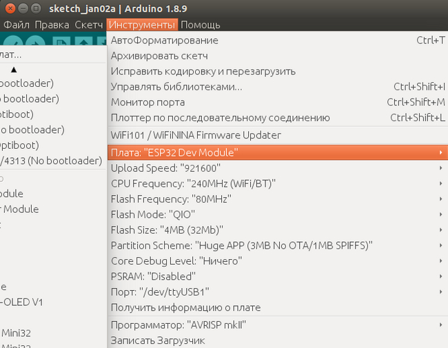 Как добавить ESP32 в среду Ardiuno IDE можно узнать на странице http://rcl-radio.ru/?p=92558