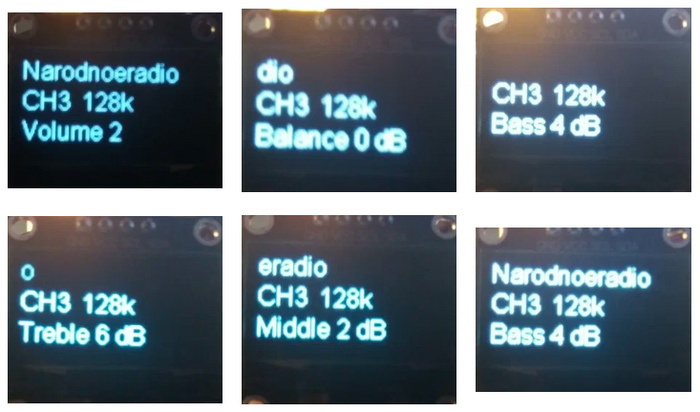 Управление Интернет радио осуществляется при помощи энкодера и двух кнопок. Кнопки позволяют переключать каналы станций, а энкодер регулировать параметры громкости, баланса и тембра. Кнопка энкодера осуществляет переход по пунктам меню.
