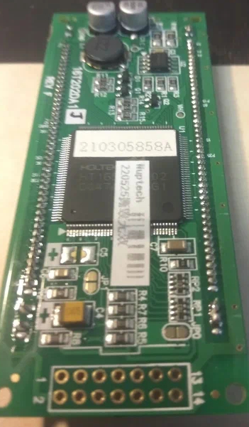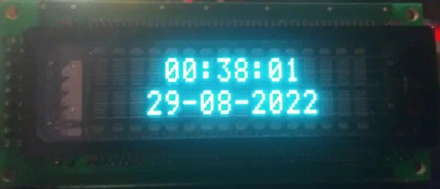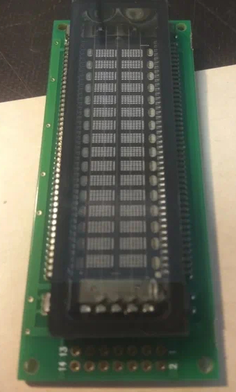 Дисплей VDF1602 (16T202DA1E) выполнен на базе вакуумно-люминесцентного индикатора, который может отображать ASCII символы в 2 строки (16 знаков в 1 строке) каждый символ в виде матрицы 5х7 пикселей.