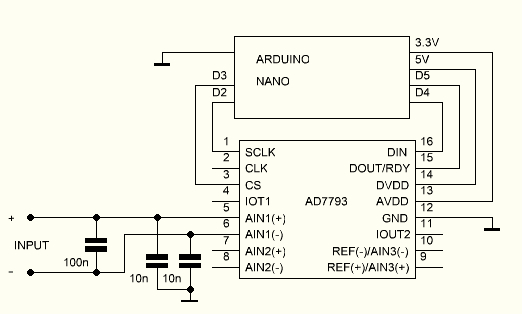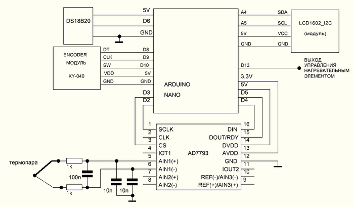 АЦП AD7793 предназначен для высокоточного измерения постоянного напряжения, может применяться для измерения напряжения термопар и других датчиков с выходным напряжением в несколько единиц или десятков мВ. Так имеет два выхода стабилизированного тока для питания термометров сопротивления.