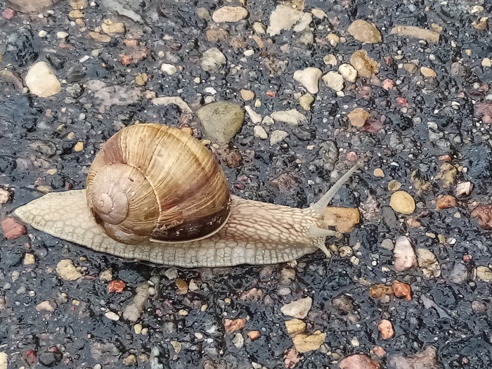 7. Улитка с целую ладонь недалеко от Мирского замка.