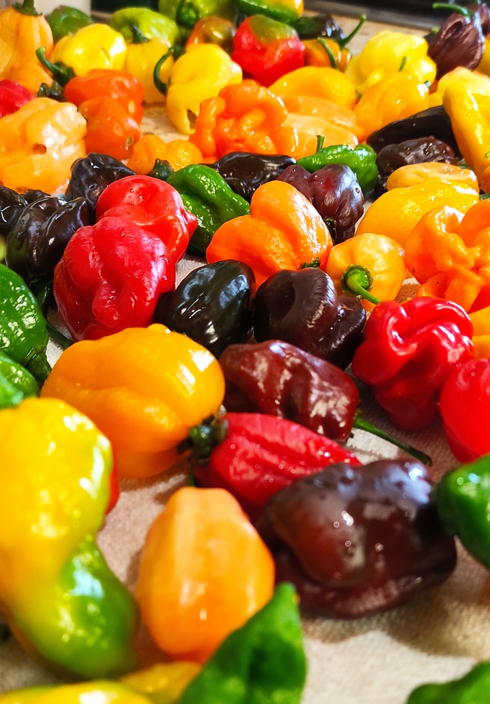 Здравствуйте. Не так давно проникся историей про острое. Не то, что бы любитель. Что характерно - пришел с другой стороны, доставляет внешний вид растений, особливо если говорить про всякие аннуумы, а-ля боливийская радуга и etc. Но, достаточно быстро, не зацвёл и первый аннуум, пришло желание более серьезных сортов. Ниже по фото рассада 7 сортов Хабанеро, пока все примитивно в универсальном грунте с досветом по возможности, кормлю GHE по табле грунта.