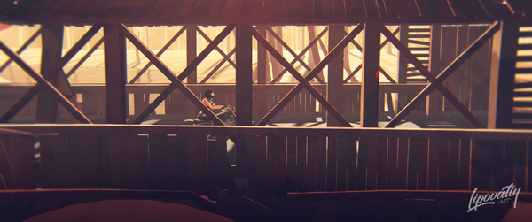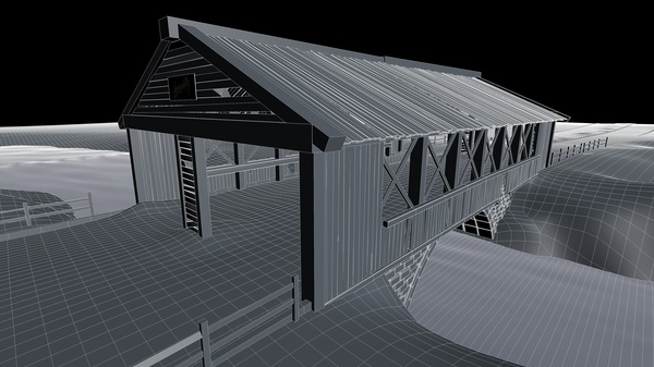 Хотя мне больше напоминает гараж/ангар, чем мост. Я думаю это из-за полос движения, которые разделены колонами. И да, проработан как и байк - с одной стороны.