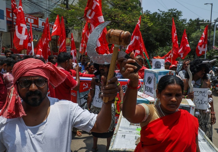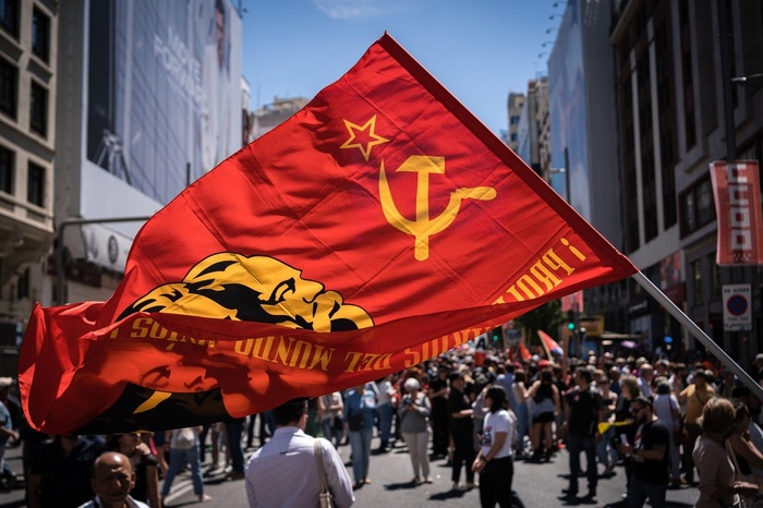 Коммунистическая партия Британии на марше протеста в центре Лондона