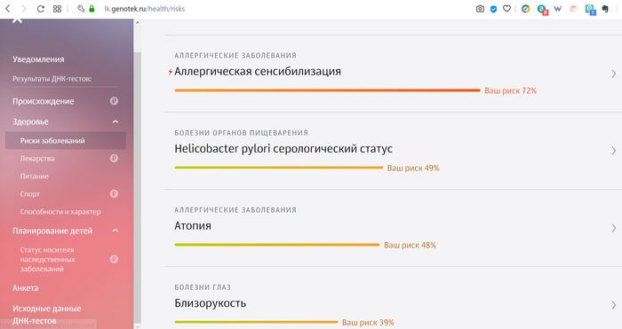 И вуаля, меньше чем за 100$ (с учетом текущих скидок у MyHeritage) вы получаете и анализ происхождения и анализ генетических рисков по 123 заболеваниям.