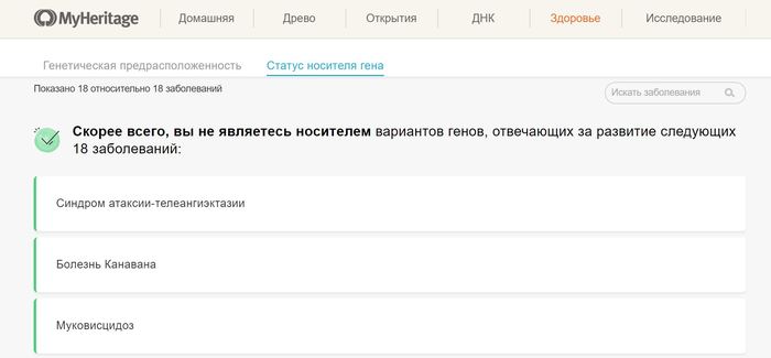 Примерно такой же анализ на MyHeritage стоит сейчас в районе 60$ и гораздо менее информативен, но более интересен тем, кто хочет проверить себя на наличие наследственных передающихся заболеваний типа муковисцидоза или болезни Канавана.