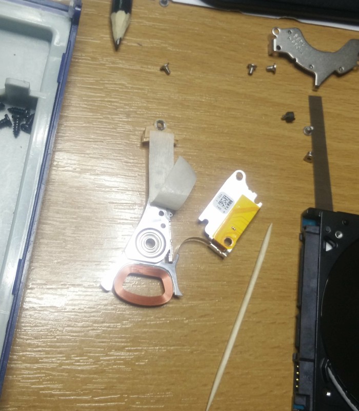Далее поиск донора БМГ (Блока Магнитных Головок). Привозят такой же диск, он будет разобран и далее непригоден к использованию. Приступаем к замене БМГ