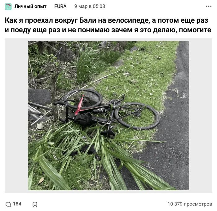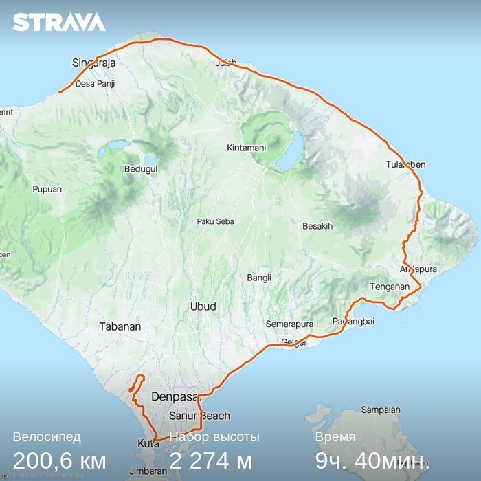 Я шоссер уже 2 года (в далеком прошлом проф. BMX райдер) и у меня возникла идея проехать вокруг острова Бали на велосипеде (шоссейнике) в идеале за 1 день. В первый раз тотал расстояние было около 480 км. и около 400 км. во второй раз.