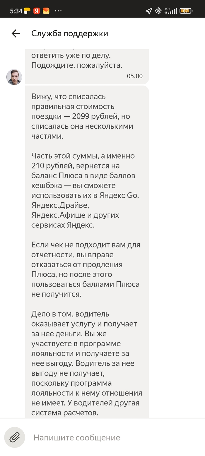 Ситуация в целом банальная,вызвал такси в аэропорт,благополучно доехал,в момент завершения поездки заметил,что водителю заплатили меньше,чем списали с меня.Пишу в поддержку,что за нахер,на что получаю шедевральный ответ,я участник программы "лояльности" поэтому я заплатил больше,но эти деньги мне вернутся вообще в хер мне не впершимися баллами...