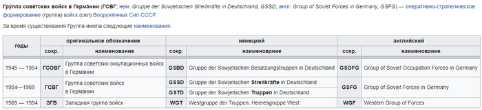 И оказывается, что в период, когда в соответствии с Постдамским соглашением Германия была разделена на зоны оккупации, наши войска так и именовались: Группа советских оккупационных войск в Германии.