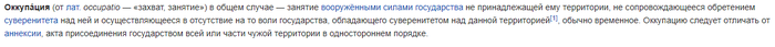 @Zergulio, Вы не были в курсе всего этого? Или Вас просто пугает термин "оккупация"? Так в нем нет ничего страшного. Термин, ничем не отличающийся от слов "победа", "поражение", "капитуляция" и т.д. Т.е. слово, описывающее собой определенный процесс.