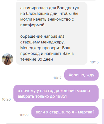 Не поленилась, написала в поддержку. Те потребовали скрины из личного кабинета, но таки им сразу не поверили, дали доступ всего на 3 дня, пообещав утроить тотальную проверку, вдруг я покусилась незаконно на три-то месяца. Ладно, решила зарегистрироваться, хоть посмотреть, как меня там тренировали бы.