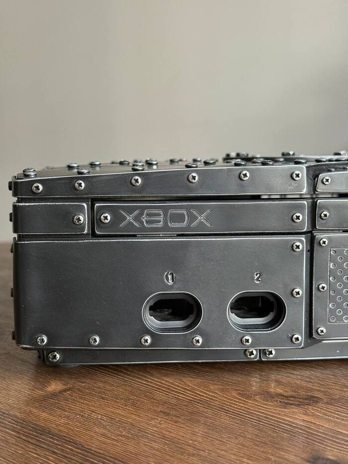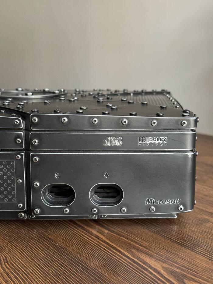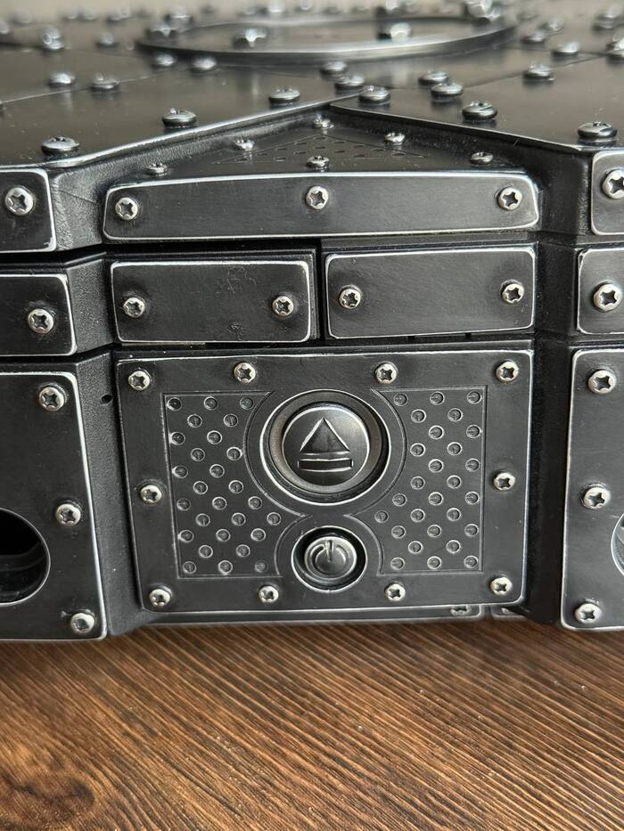 На обшивку ушло 2 алюминиевые кастрюли. Лобовое стекло вырезано из 2-х литровой банки. Сидение- перфорированная кожа. Панель и обшивка салона - облицовочные панели старого лифта. Двигатель-неизвестная сантехническая деталь. Руль спаян из латунной проволоки.