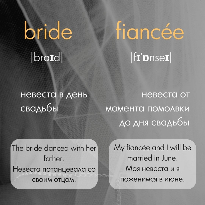 А сейчас я вам расскажу про разницу между двумя невестами: bride и fiancée.