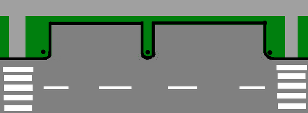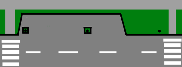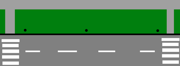 Вот схема куска дороги напротив моего дома. Я обозначил тротуар, газон, бордюр и фонарные столбы:
