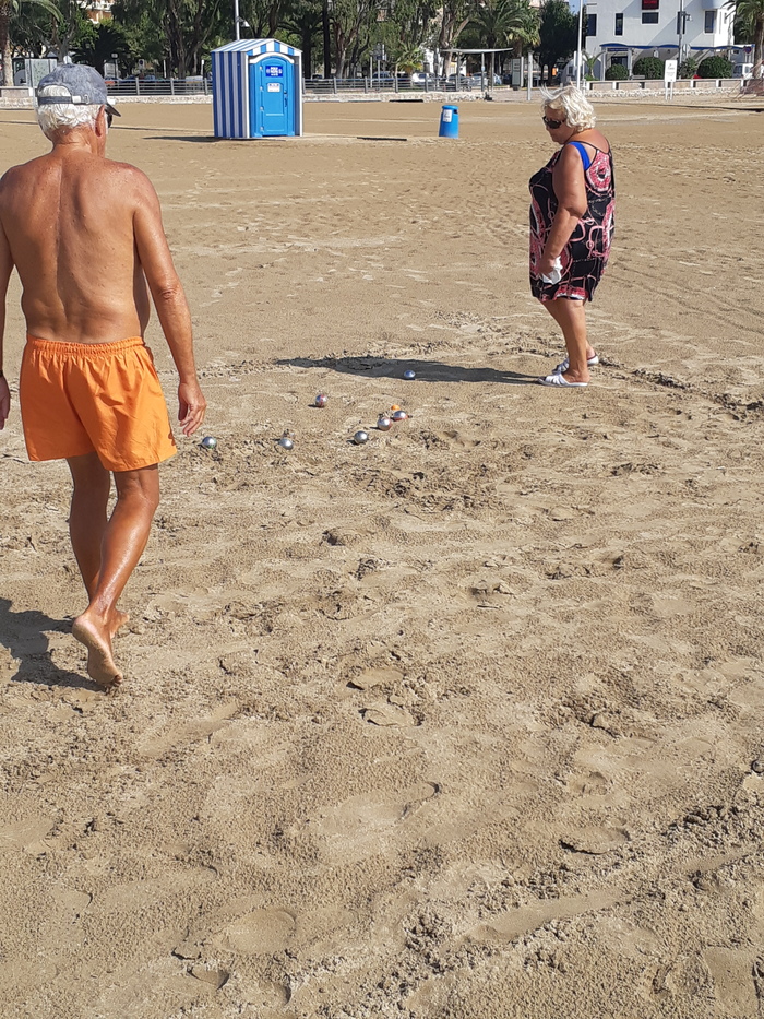 Днем на пляже пенсионеры играли в какую-то игру. Шарики кидали. Очень увлеченно. правил не понял.