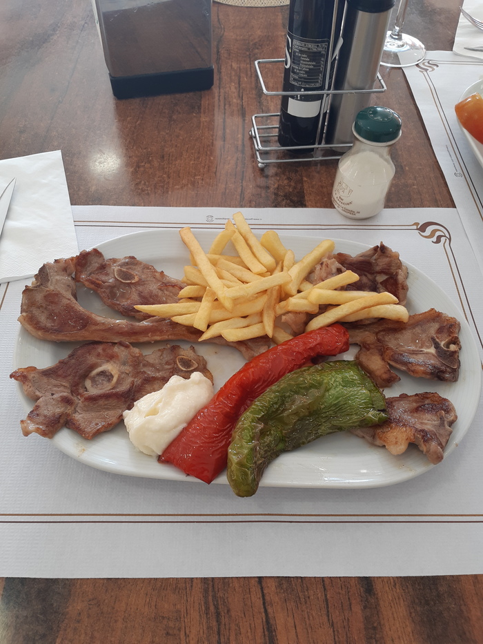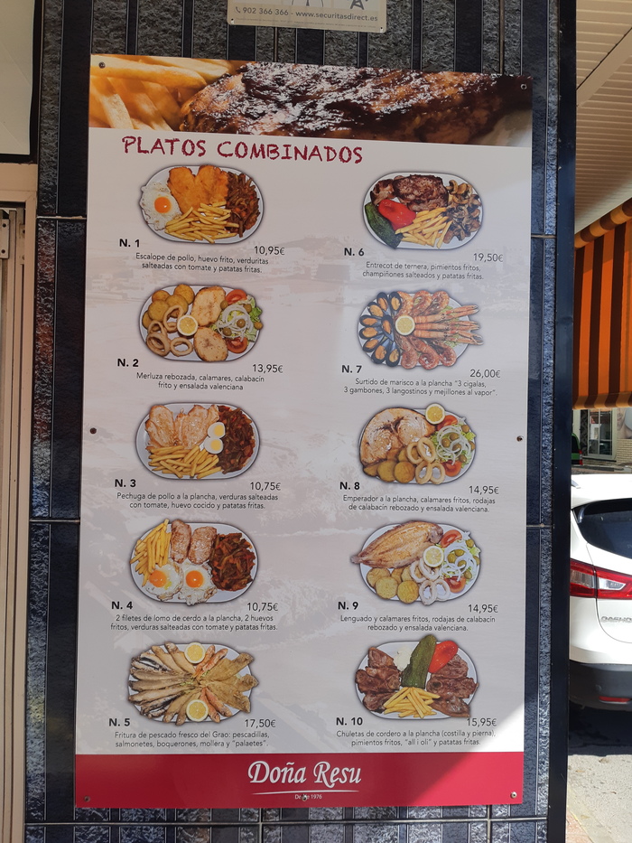 Питались в разных кафешках и ресторанах.Испанская, Индийская, Европейская кухня. Еда такое себе. На любителя. Скромный ужин с бокалом вина выходил 40-50 евро на двоих. Не очень вкусно.